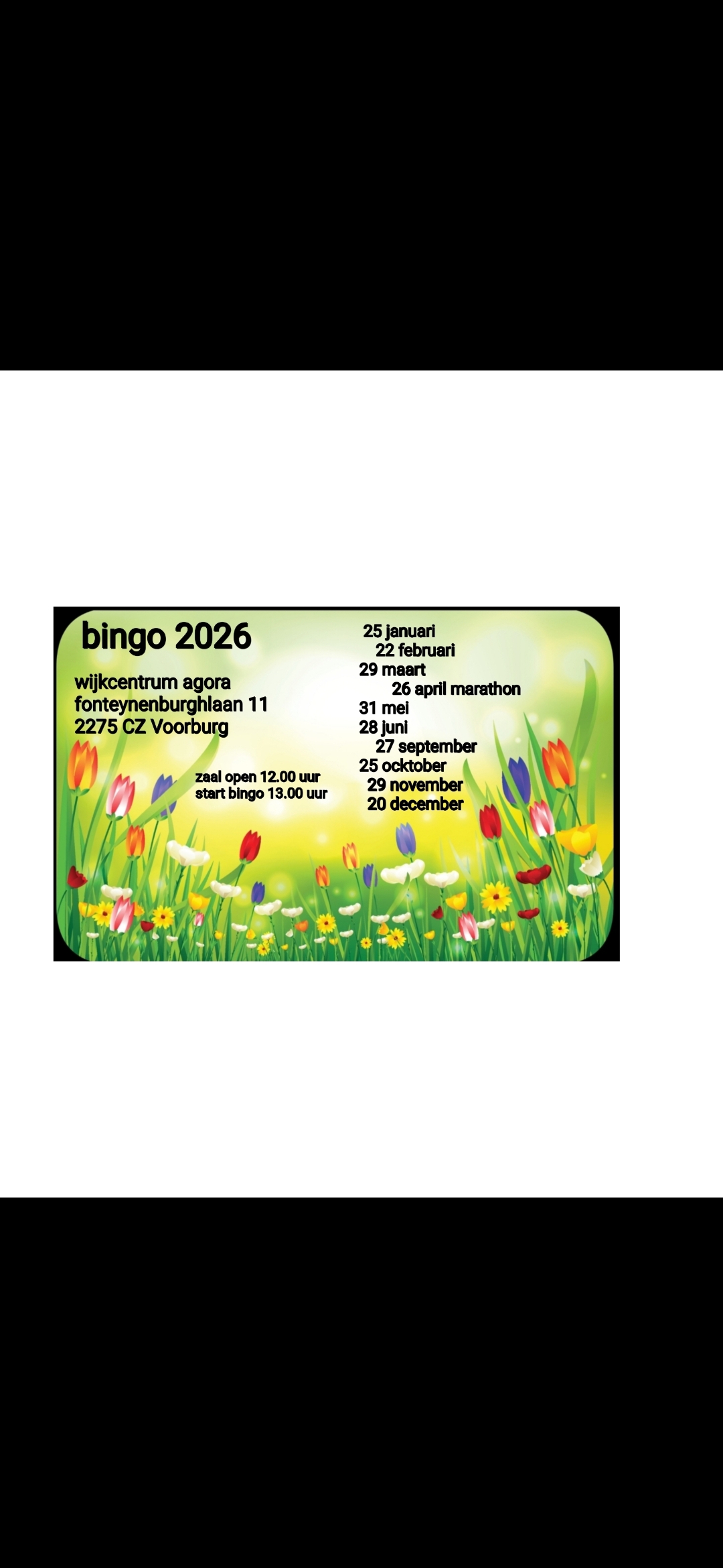 zaal open om 12.00 uur, start bingo 13.00 uur